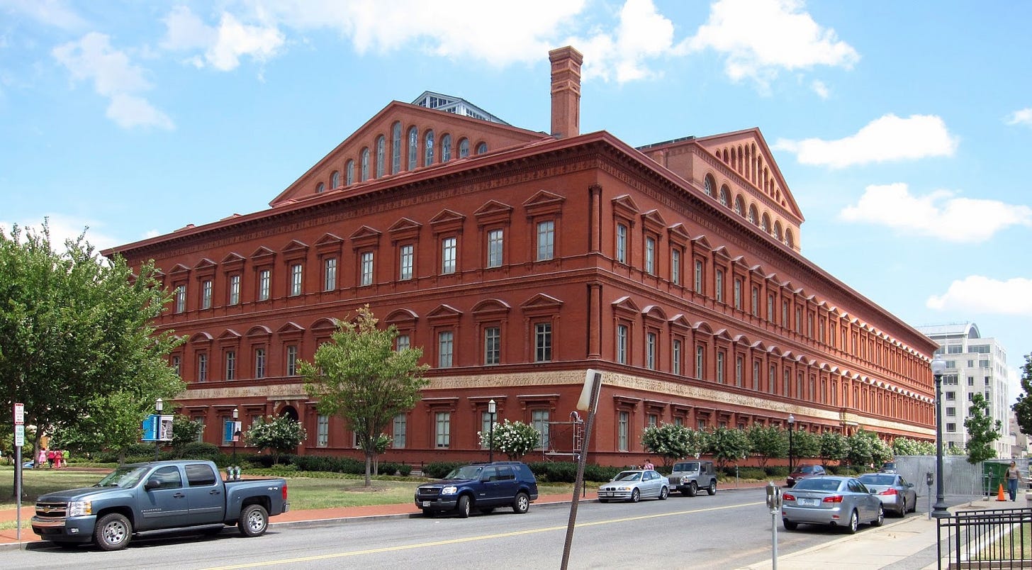 The Pension Building, now the National Building Museum, rose on the square’s northern boundary in 1887, a colossus built by Montgomery C. Meigs, the Army’s Quartermaster General. Inspired by the Palazzo Farnese, Meigs wrapped his adaptation in a 1,200-foot-long plastered frieze depicting Union soldiers, sailors, and laborers, Black and white, in motion, on the march.