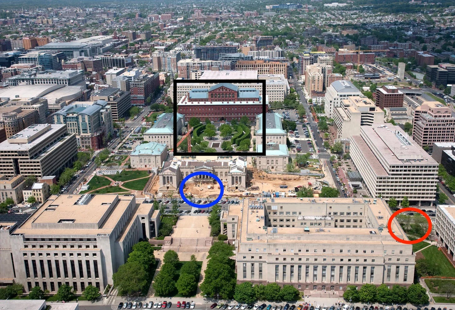 George Washington charted this crooked path when he abruptly fired Pierre L’Enfant, the Parisian architect he chose to design the “Federal City.” In his 1791 “Manuscript Plan for the City of Washington,” L’Enfant designated Judiciary Square for the U.S. Supreme Court.